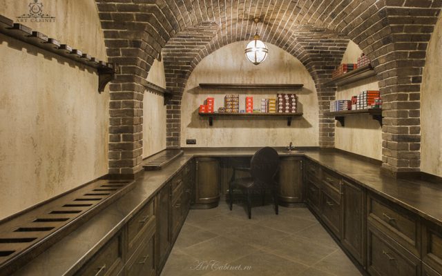 Одно из любимых, фирменных направлений нашего производства. Сложная кирпичная кладка винного погреба делала создание этой винотеки весьма непростым заданием. Тем интереснее было достигнуть нужного результата: дубовые винные стеллажи идеально вписаны в арочные кирпичные своды, детально продуманы и просчитаны все полки, ниши, ящики. Редкие вина постепенно занимают свои постоянные места в этом винном погребе превращая его в настоящее хранилище для авторской винной коллекции хозяина дома.
