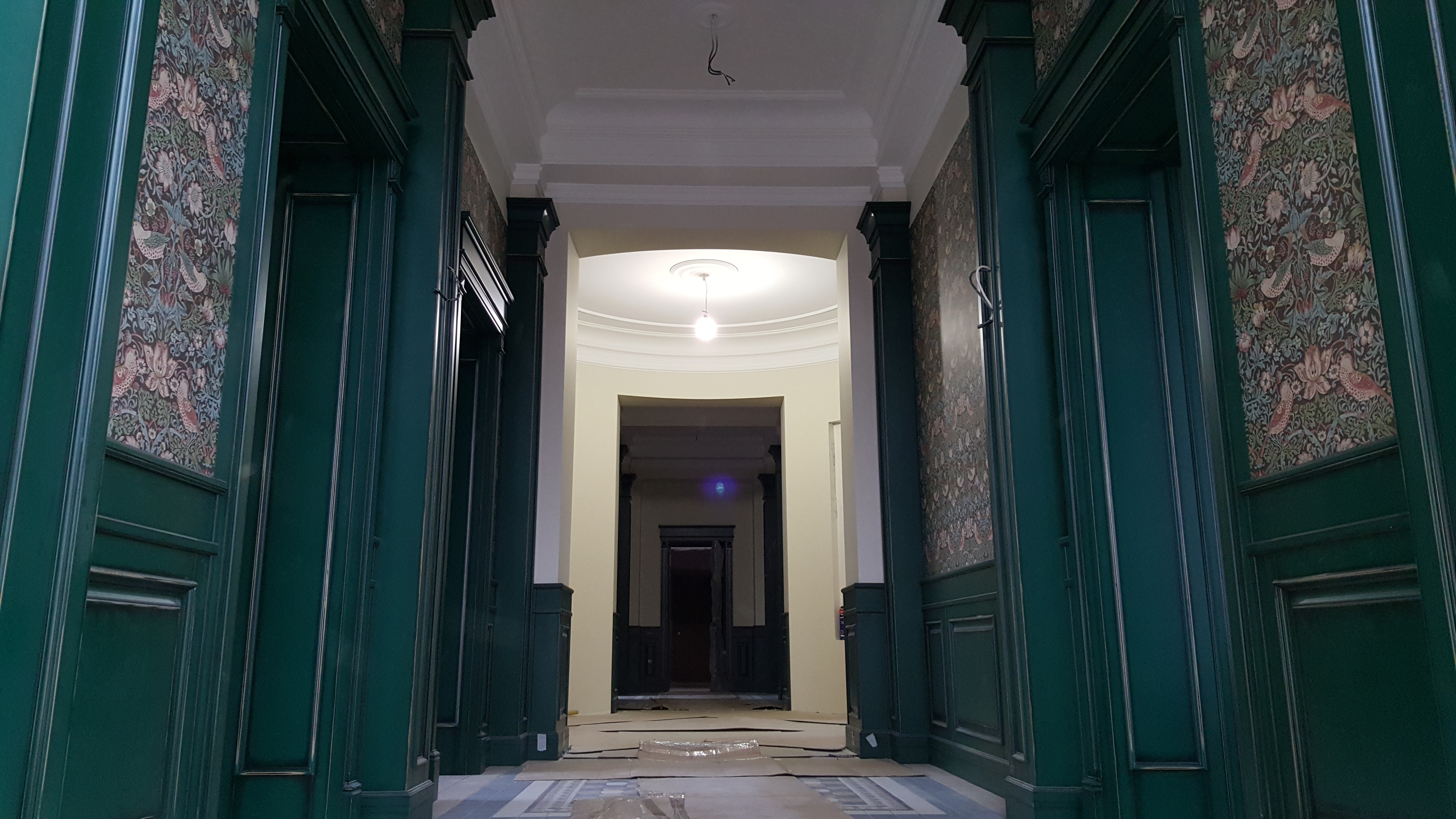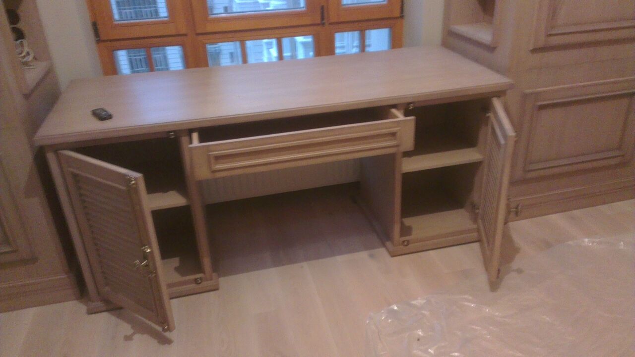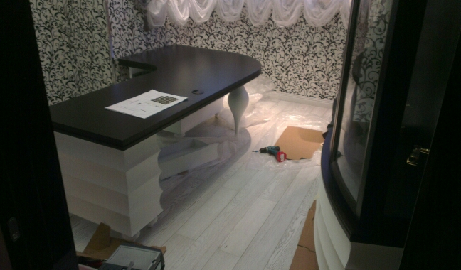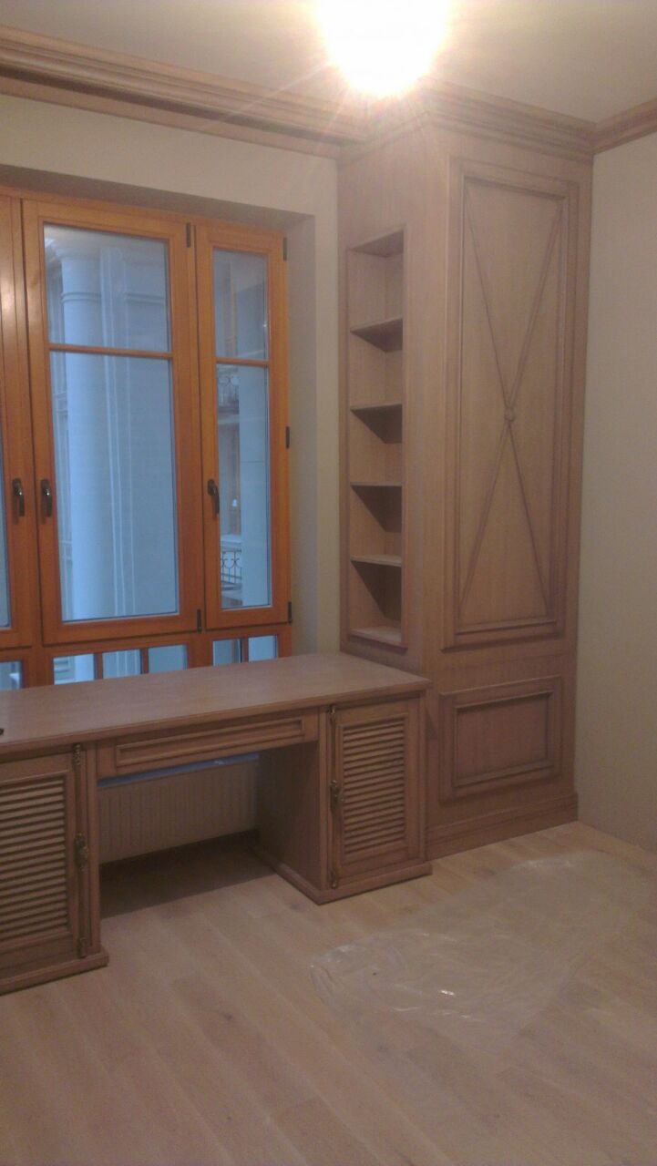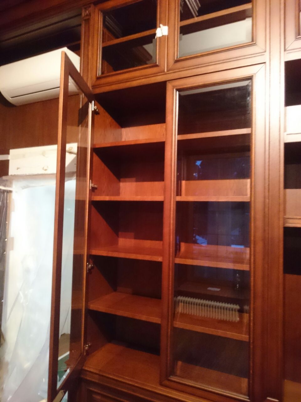 Рабочие фото монтажа большого домашнего кабинета-библиотеки.
