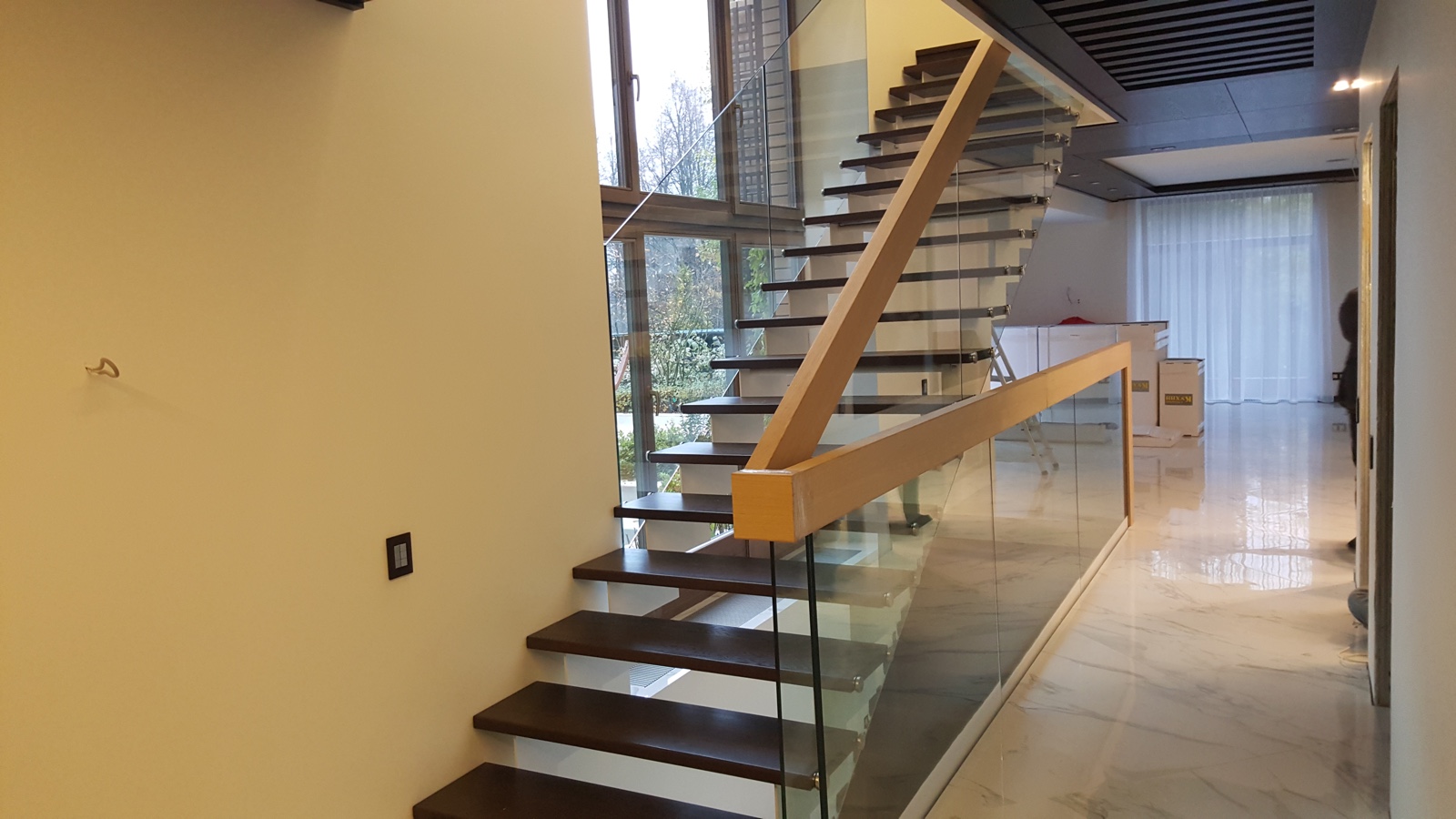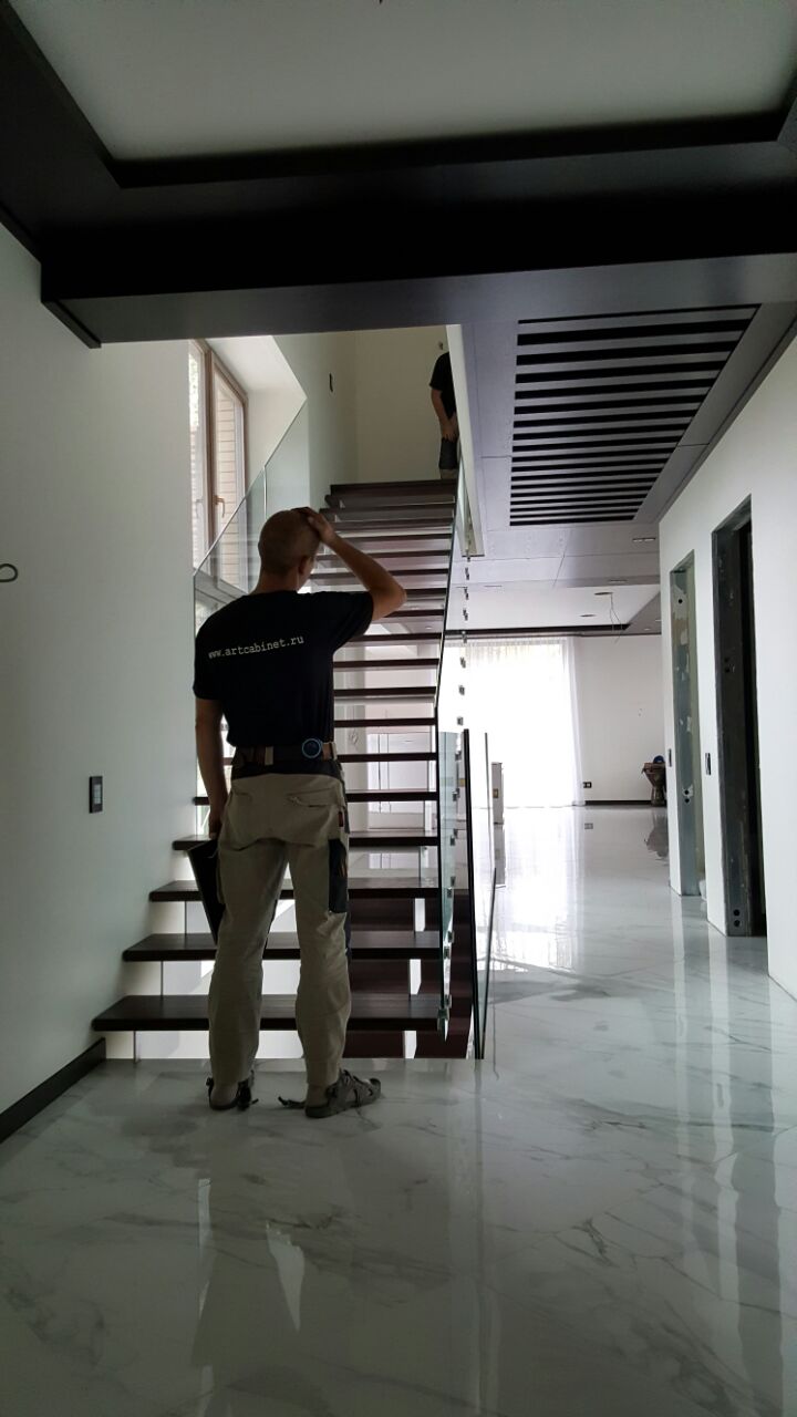 Финальный предмонтаж лестничного обрамления перед отделкой.. Пролеты длинные, требуется филигранная зарезка углов «по месту».