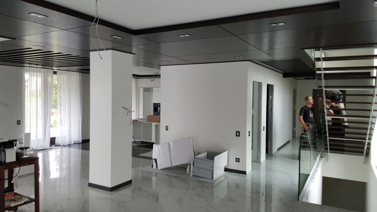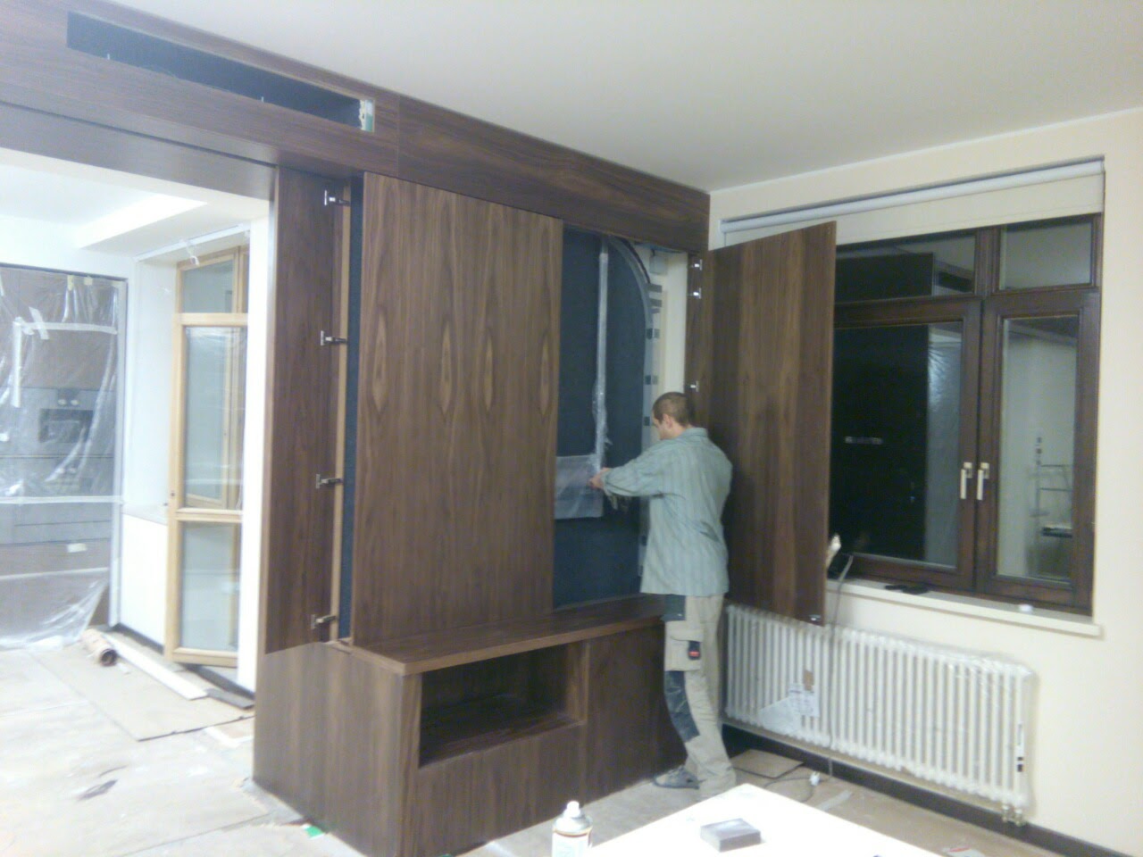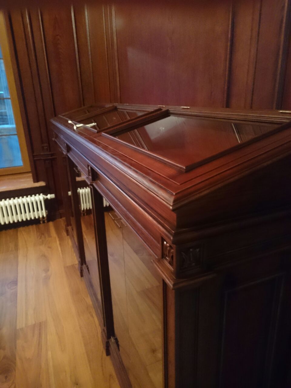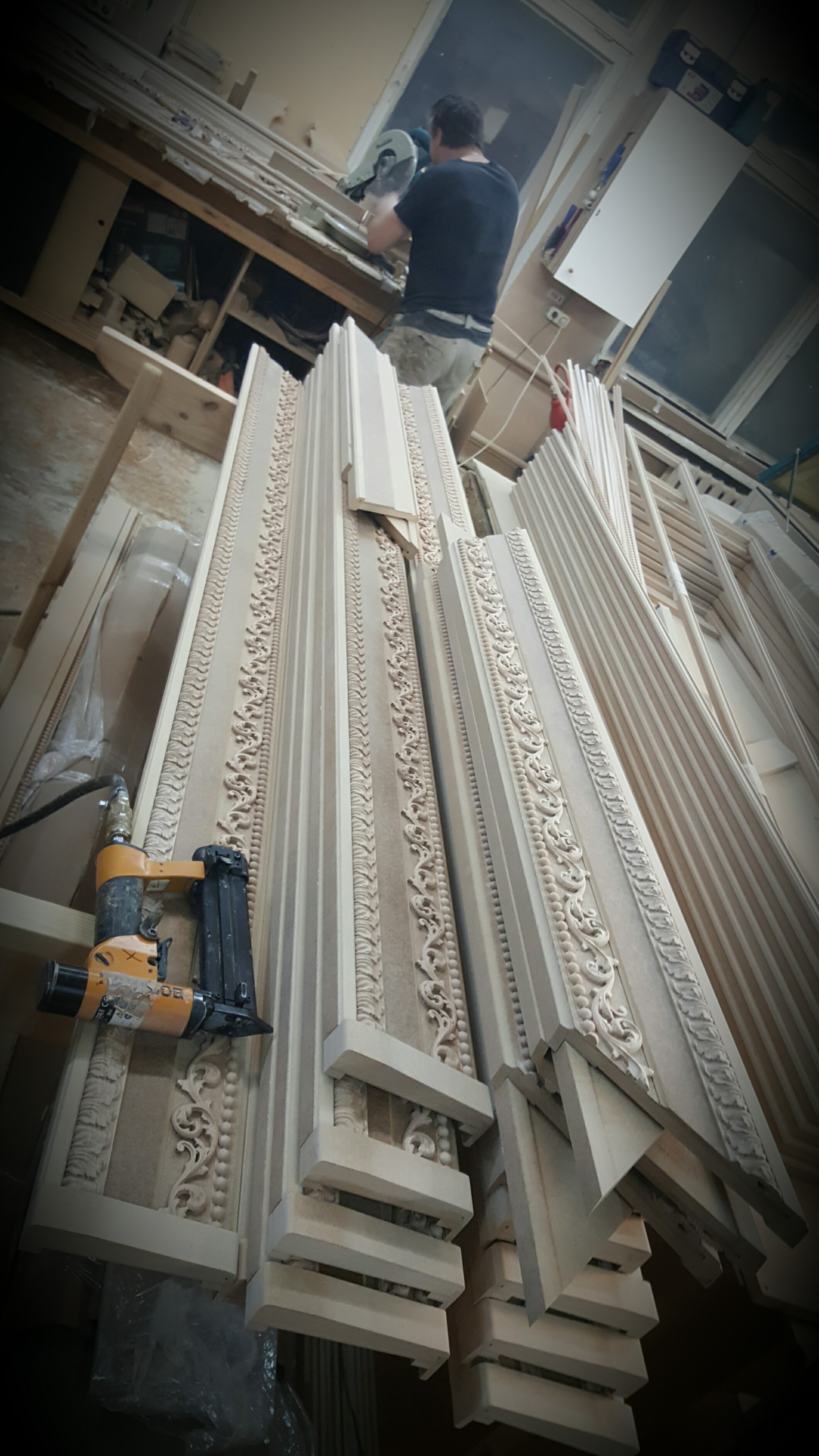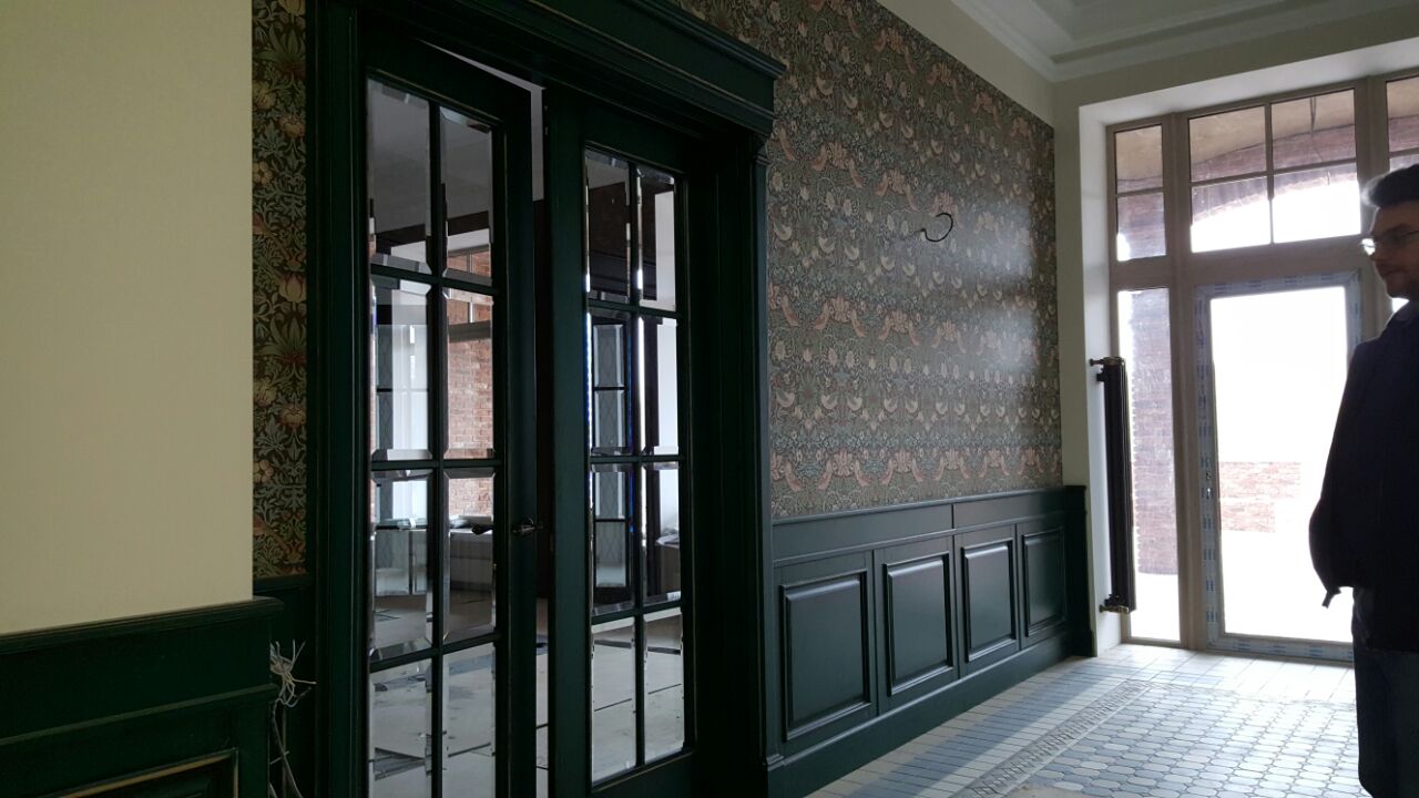 Сданы все основные работы по объекту. Потолочные панели, шкафы, двери, библиотека, лестница, множество декоративных элементов- выполнен большой объем столярных работ.