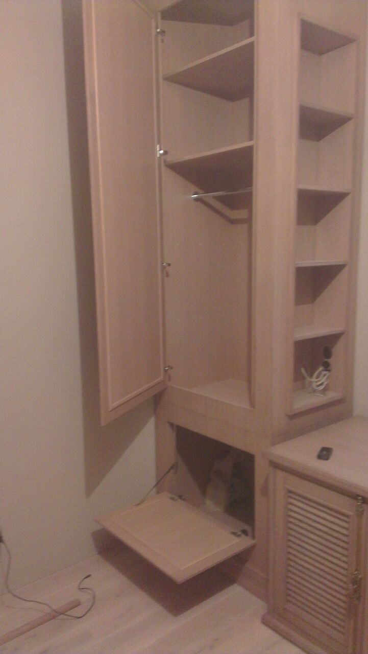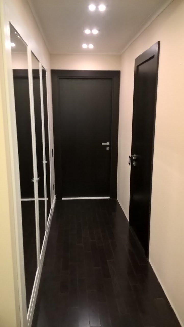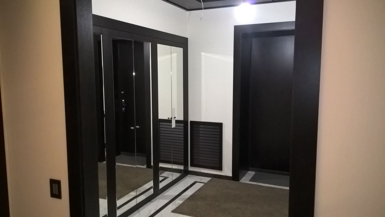 Работа по объекту на стадии завершения. Нами изготовлены и смонтированы межкомнатные двери, лестница из массива, стеновые панели, плинтуса, шкаф-обувница и множество отдельных интерьерных элементов этой квартиры.