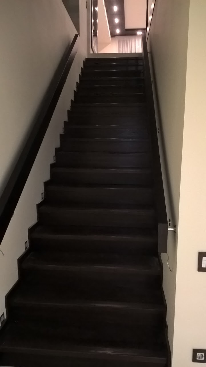 Заканчиваем монтаж подоконников и лестницы из массива дуба. Сознательно ушли от классики. Получилось современно, строго, минималистично и симпатично))