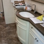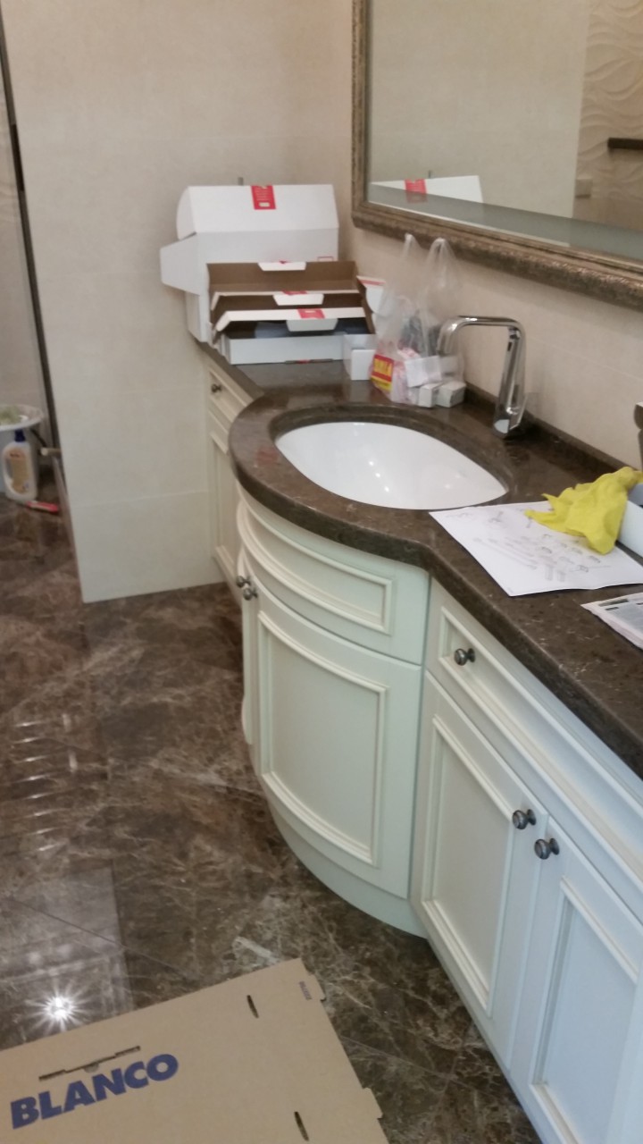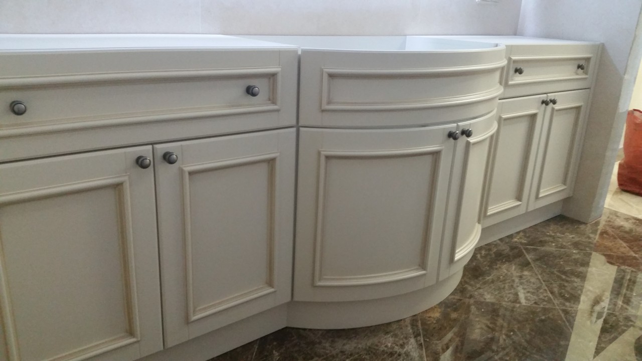 Тумба под умывальник с радиусными фасадами под раковиной.