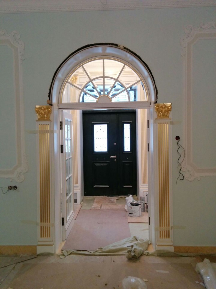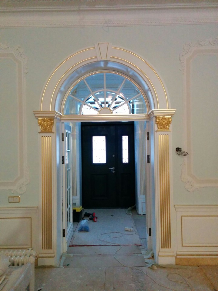 Заканчиваются монтажные работы по установке дверных порталов и стеновых панелей в загородном особняке. Несколько «живых» фотографий с объекта…