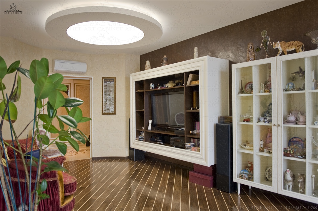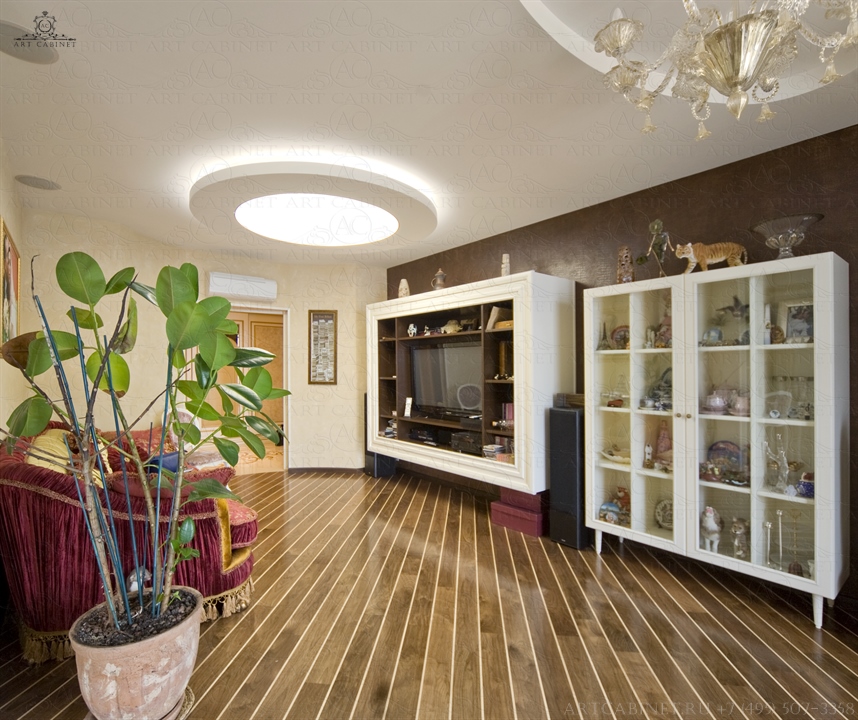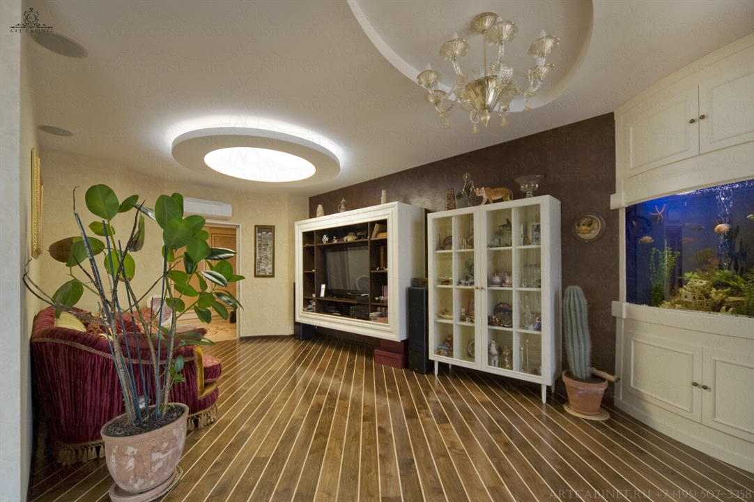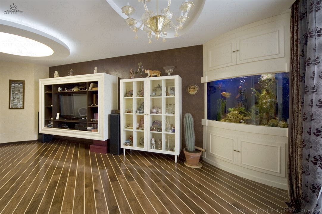 Вся мебель, изготовленная ООО «Арт Кабинет» для этого объекта, придирчиво контролировалась дизайнерским бюро и, непосредственно, заказчиком на всех этапах производства. Мы были рады столь плотному сотрудничеству: это позволило нам доказать свое мастерство и профессионализм, а заказчику остаться полностью довольным полученным результатом. Мебель по индивидуальному проекту: шкаф-купе, сервант для гостиной, радиусные двери, карнизы, портал для видеотехники, подиум для аквариума, гардеробная комната, межкомнатные двери.
