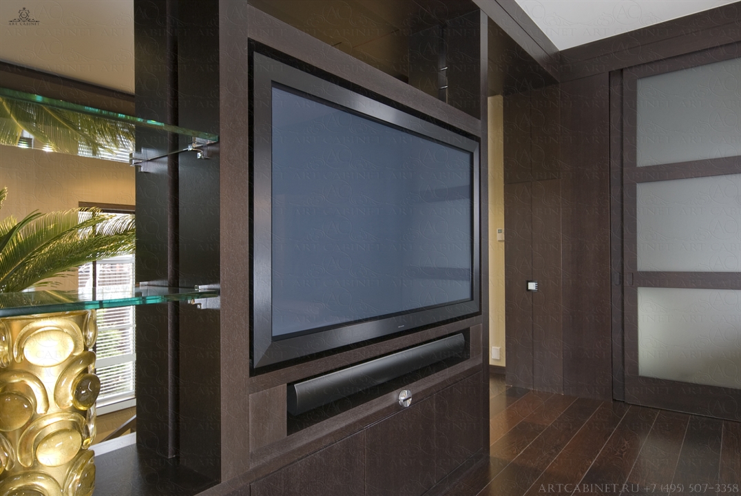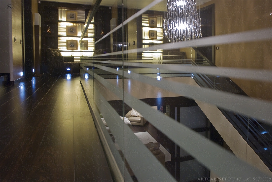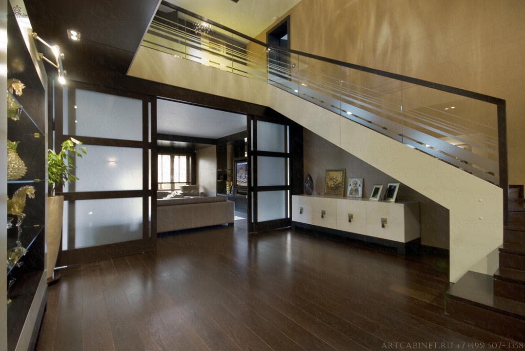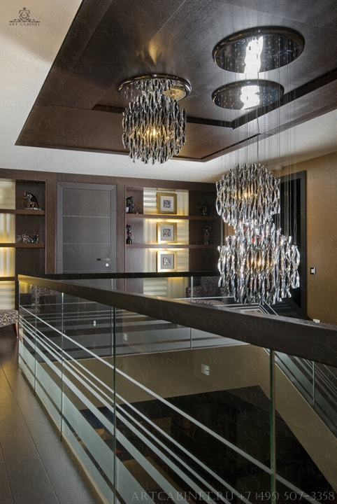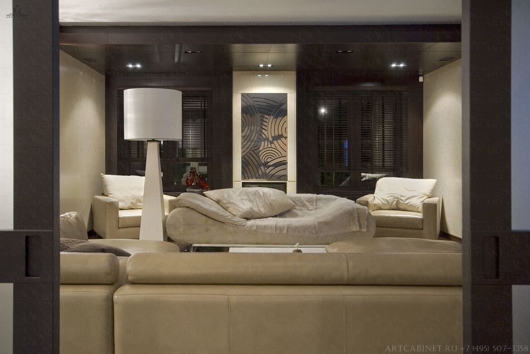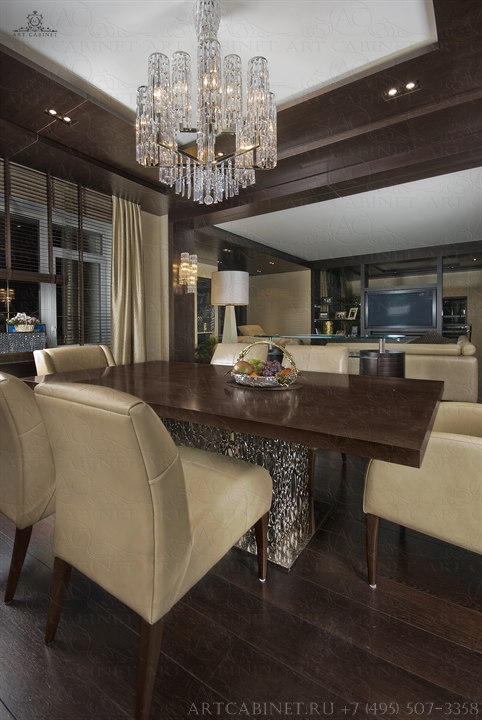 Данный проект — далеко не первая совместная работа компании «Арт Кабинет» и студии экспериментального проектирования «Ракурс». И, как всегда — безупречность вкуса, элегантность и узнаваемый стиль. Шоколад и пастэль — достаточно простое, но очень уютное сочетание цветов, использованных авторами в дизайне помещения. Наши столярные работы: стеновые и потолочные панели, столярные конструкции и авторская дизайнерская мебель, лестничный марш, дверные блоки и порталы, декоративные элементы из дерева. Использовался шпон и массив венге, дуба, клена.