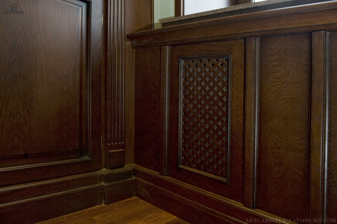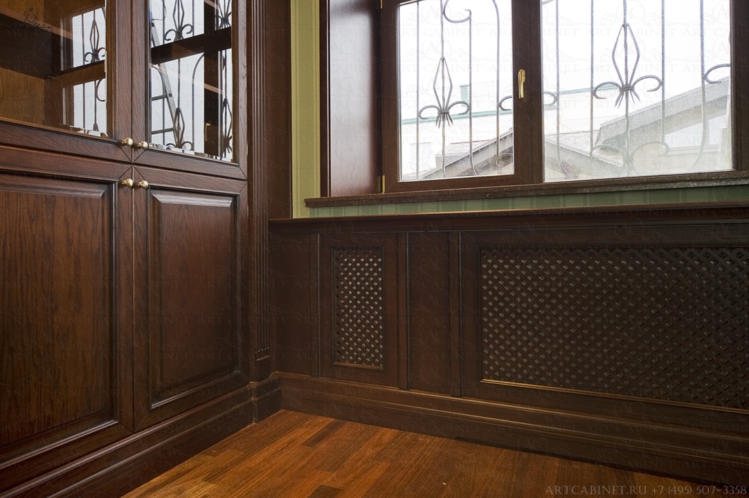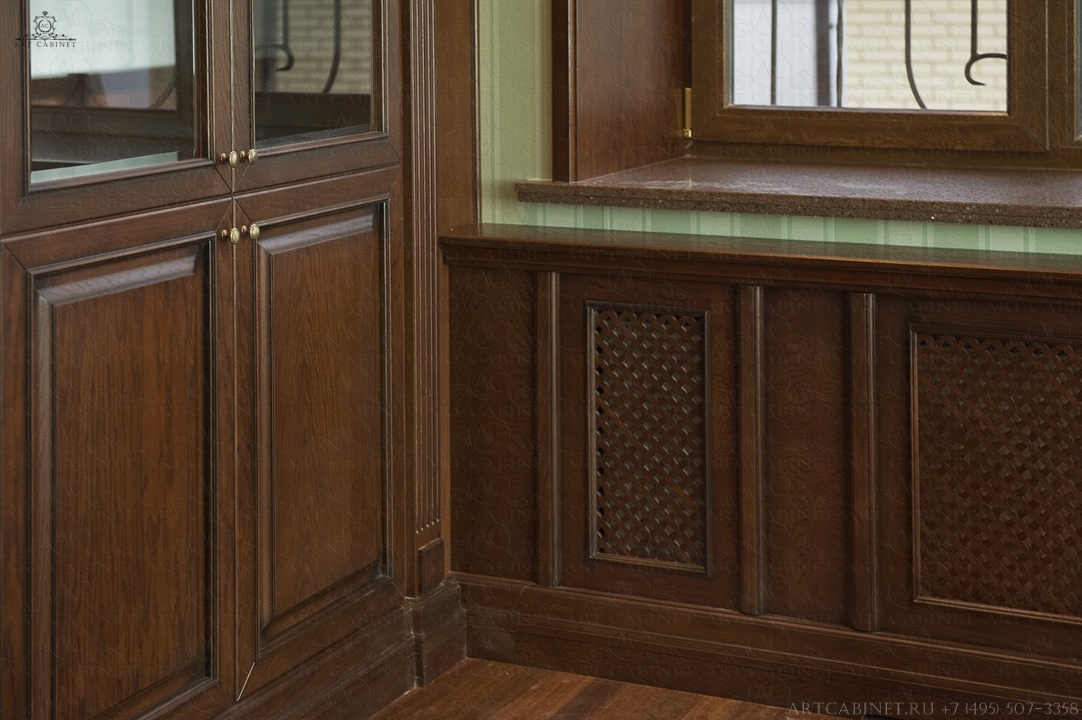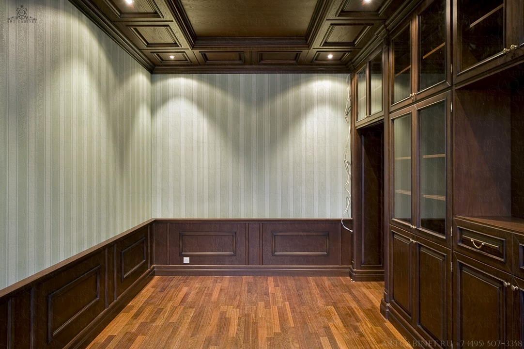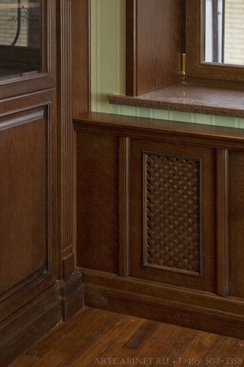 Классическая кабинетная стилистика предполагает филенчатые стеновые панели и фасады, пилястры, карнизы, колонны. Все эти детали делают пространство сомасштабным человеку. Именно здесь возникает особое эмоциональное состояние, в котором хорошо думается и читается. Поэтому современные люди продолжают создавать классические кабинеты и библиотеки. Наши столярные изделия: кабинет в классическом стиле: филенчатые фасады, стеновые панели, оконные и дверные блоки, книжные шкафы, кессонированный потолок, радиаторные решетки, декоративные элементы из дерева.