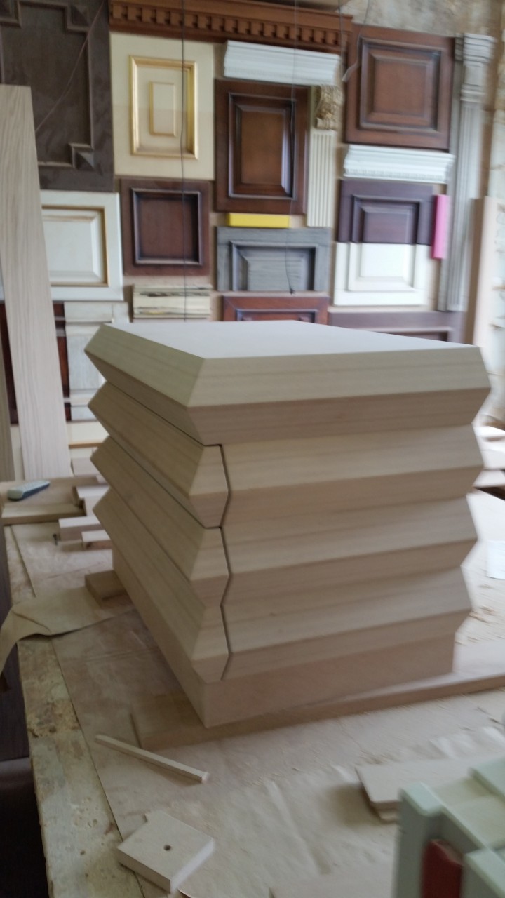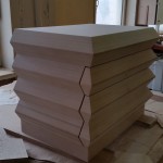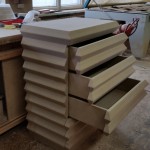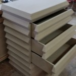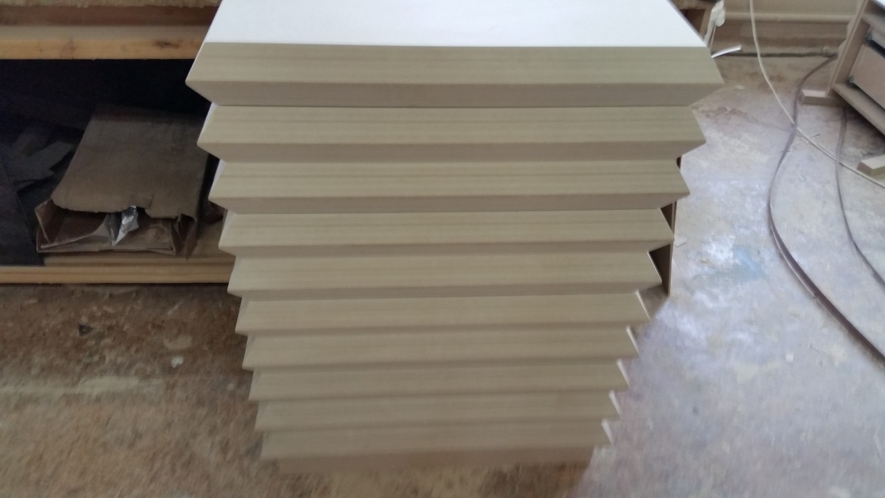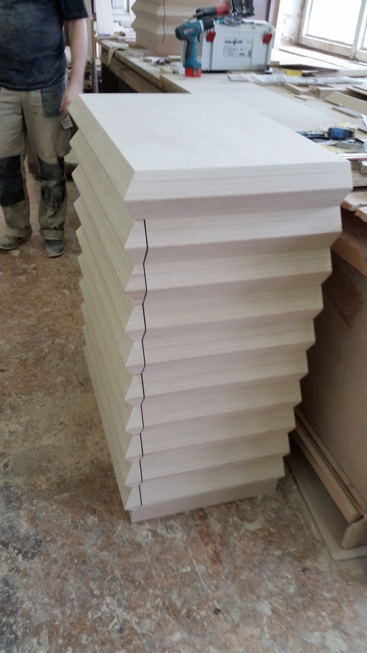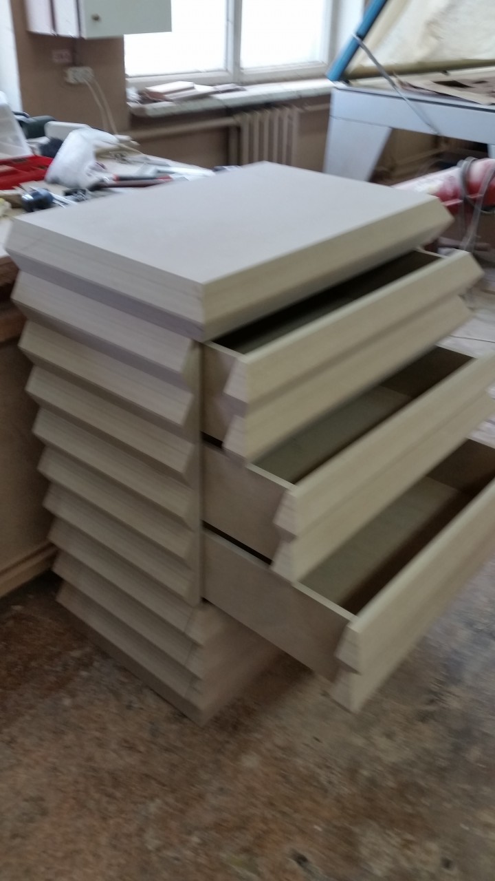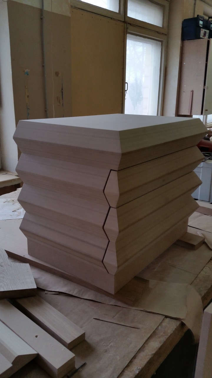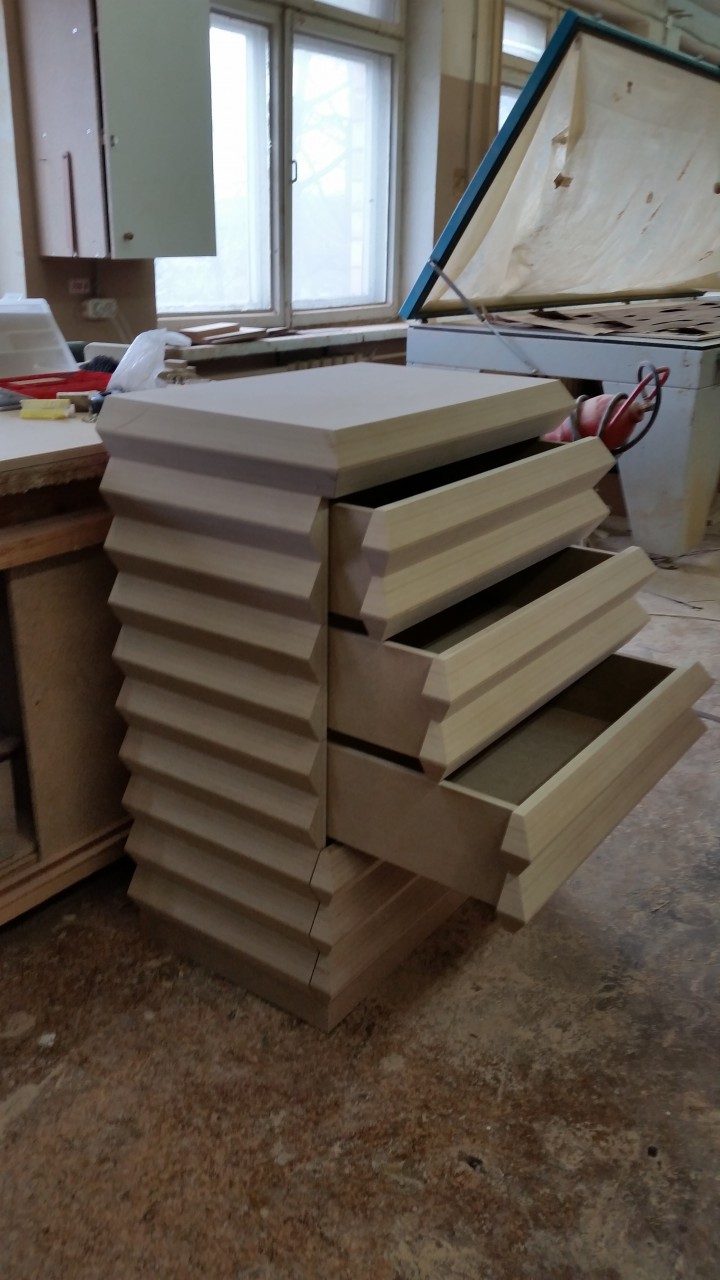 Необычные «дизайнерские» тумбочки — гармошки. Стадия присадки ящиков перед сдачей в отделку.