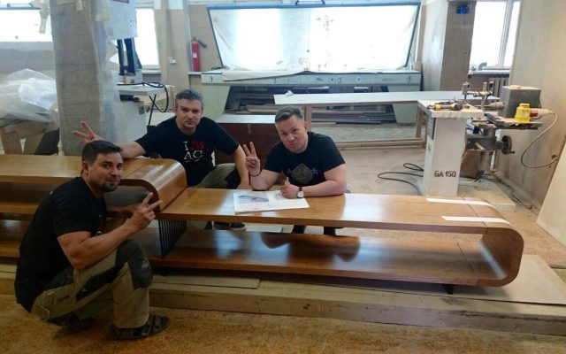 Приятно осознавать, что в процессе реализации этого проекта была создана редкая творческая атмосфера. Талант архитекторов, педантичность и кропотливая работа конструкторов, технологов и мастеров нашей компании привели к созданию уникального арт-объекта, состоящего из более чем тысячи криволинейных деталей. В результате работы мы получили не просто уникальный образец современных столярных технологий, но и на сто процентов функциональное изделие, оснащенное передвижной плазменной панелью, баром, двадцатью открывающимися секциями и...