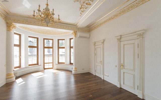 Роскошный интерьер элитного особняка выполнен в классическом стиле. Отделка декоративных элементов сусальным золотом, использование стеклянных элементов с широким двусторонним фацетом позволили добиться воздушного, солнечного и яркого интерьера. Это настоящее произведение столярного искусства. Двери, порталы, стеновые панели, резьба и декоративные элементы выполнены с соблюдением высочайших стандартов качества, предъявляемых к столярным изделиям, выпускаемым на нашем предприятии. ...