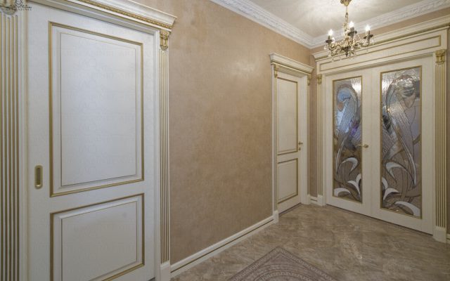 Межкомнатные двери, дверная накладка на металлическую входную дверь, раздвижные двери гардеробной, дверные порталы и дверные группы, наличники и плинтуса в едином стиле объединяют пространство квартиры и задают основной тон всему интерьеру. Очень гармонично смотрятся в этих классических межкомнатных дверях матовые стекла с широким двусторонним прозрачным фацетом. Изюминка, набирающая популярность — скрытые, «потайные» двери. Иногда они маскируются в стене, и их визуально невозможно найти. Иногда — это просто видимый...