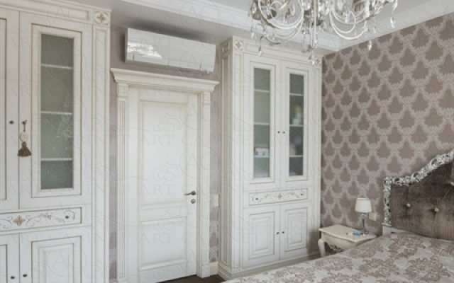 Мы изготовили и смонтировали в этой квартире все столярные изделия, предусмотренные проектом: распашные и сдвижные межкомнатные двери в классическом стиле, шкафы, карнизы, плинтуса. Светлая эмаль в сочетании с патиной, ручная роспись на шкафах, использование декоративных элементов, резьбы, филенчатых панелей и т.п. превратили интерьер квартиры в роскошные и дорогие апартаменты. ...