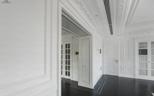 Мы сдали заказчику все столярные работы по этому объекту и увидели получившийся интерьер квартиры именно таким: светлым, консервативным и немного сдержанным. Мебель, аксессуары, свет, проработка остальных деталей в дальнейшем всецело зависят от дизайнерской студии, ведущей данный проект. Наша, столярная, часть работы полностью выполнена. Двери, шкафы, библиотека, стеновые панели, порталы, декоративные экраны радиаторов, гардеробная комната, обувные шкафы чистого, белого цвета позволили расширить пространство квартиры, оставив его для...