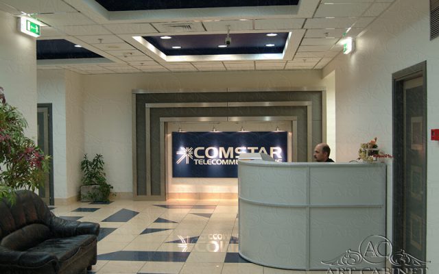 Новые технологии диктуют новые правила игры. В данном проекте мы сознательно ушли от демонстрации древесной текстуры и дополнили столярные изделия элементами, выполненными из нержавеющей стали, четко соблюдая корпоративный стиль компании «Комстар». Столярные работы: декоративный портал для логотипа компании, стойка администратора, двери и дверные блоки. ...
