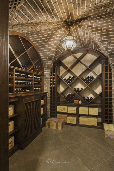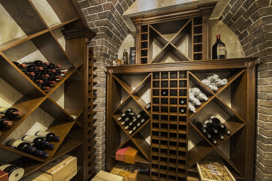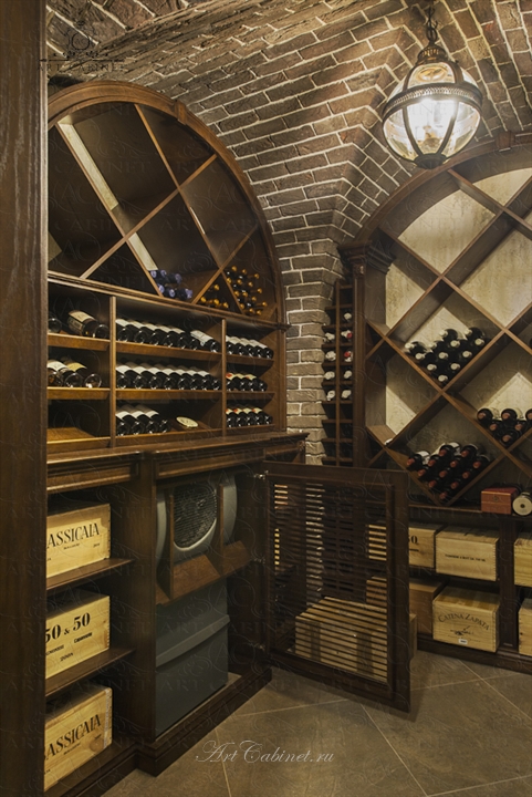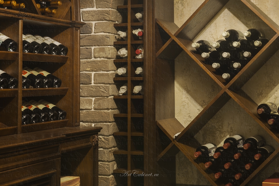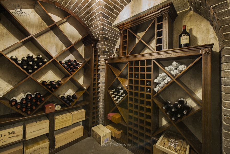Винотека в частном доме. Винный погреб: стеллажи и винные шкафы